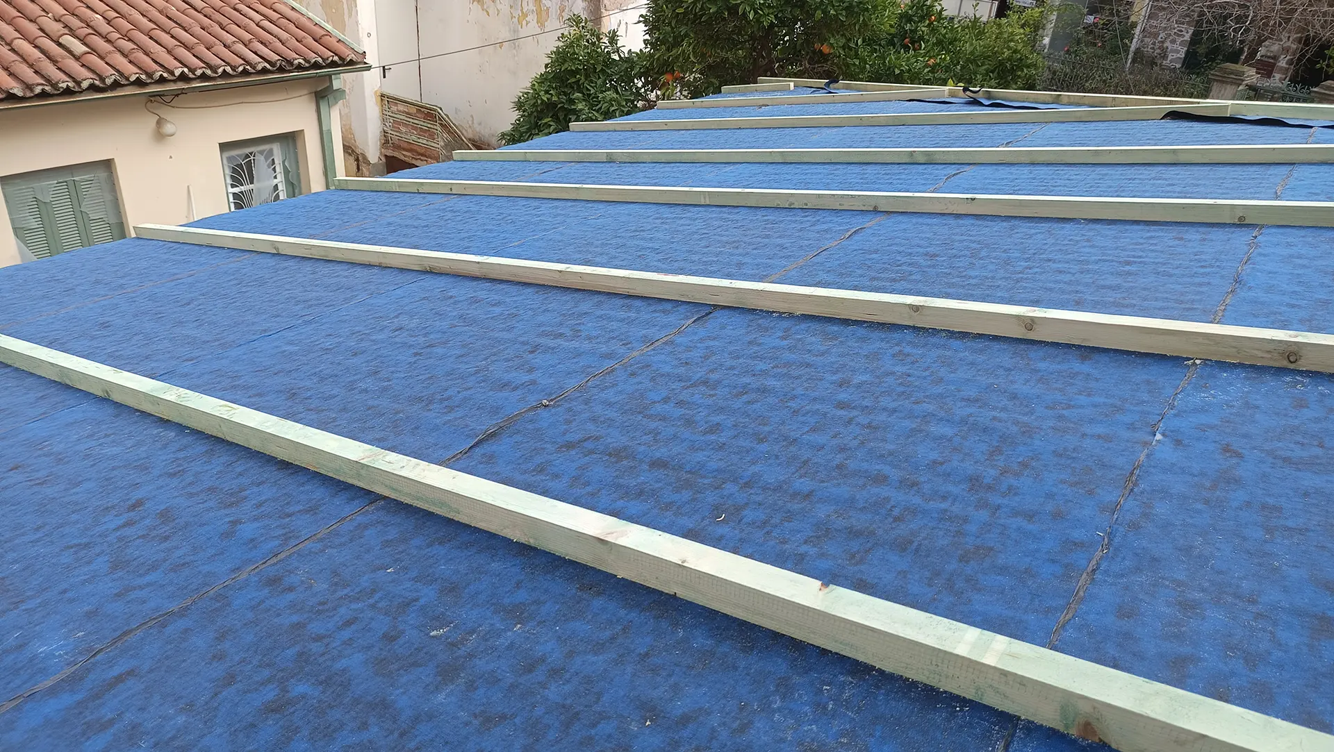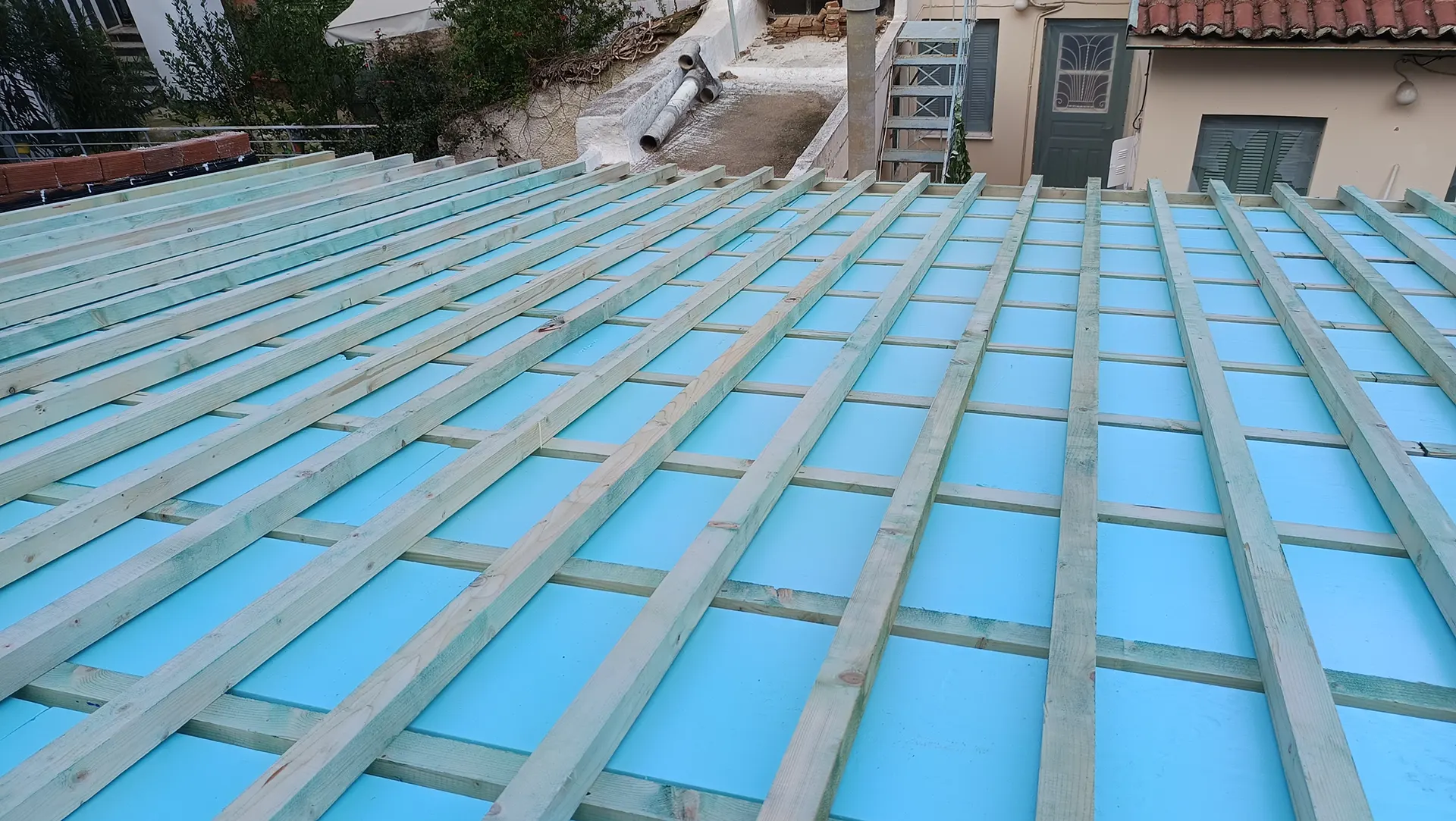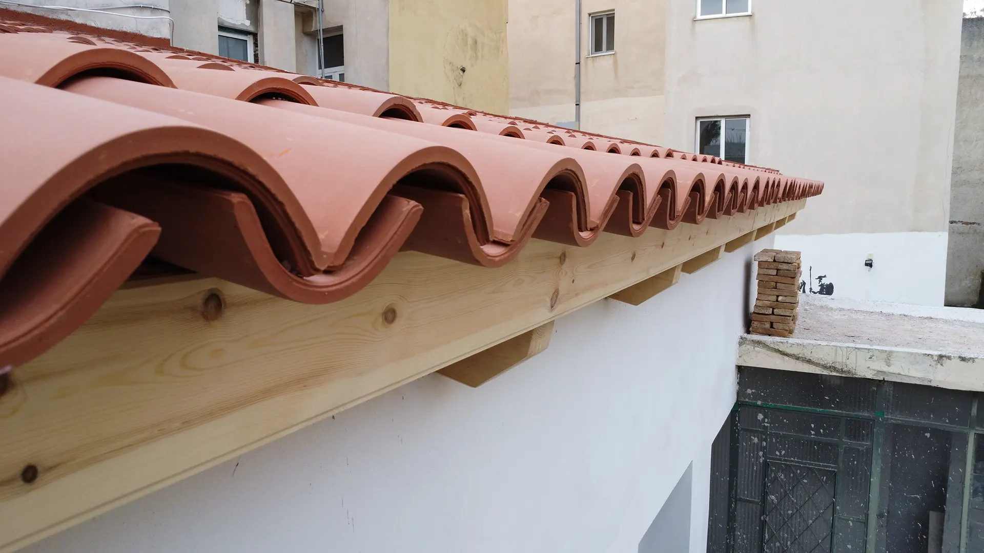 Η επιλογή του βυζαντινού κόκκινου κεραμιδιού προσφέρει μια ζεστή, αυθεντική και διαχρονική όψη, που ταιριάζει απόλυτα με τον χαρακτήρα της κατοικίας. Ο εμφανής ξύλινος σκελετός αναδεικνύει τη φυσικότητα και την κομψότητα του ξύλου, ενώ η κατασκευή στηρίχθηκε σε υψηλής ποιότητας ξυλεία, επιλεγμένη για την αντοχή της στον χρόνο και τις καιρικές συνθήκες. Το έργο περιλάμβανε την πλήρη τοποθέτηση της στέγης, την ενίσχυση της θερμομόνωσης και την προσεκτική στεγάνωση των ενώσεων, ώστε να διασφαλίζεται η μέγιστη λειτουργικότητα και διάρκεια ζωής. Με σεβασμό στην τεχνοτροπία των παραδοσιακών στεγών και την αισθητική αρτιότητα, δημιουργήσαμε μια κατασκευή που συνδυάζει τεχνική ακρίβεια με αρχιτεκτονική ομορφιά.