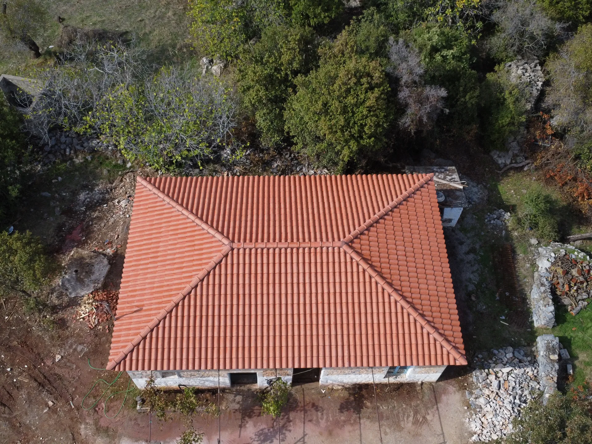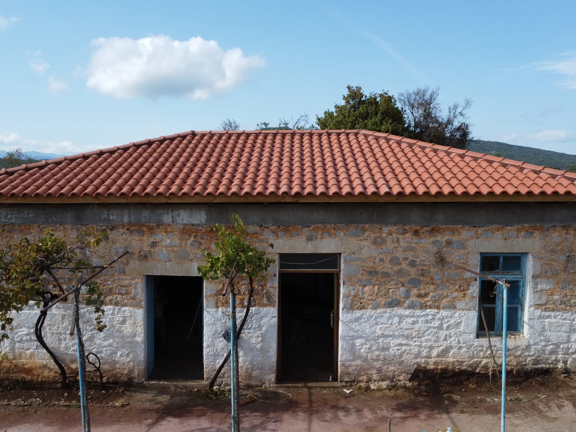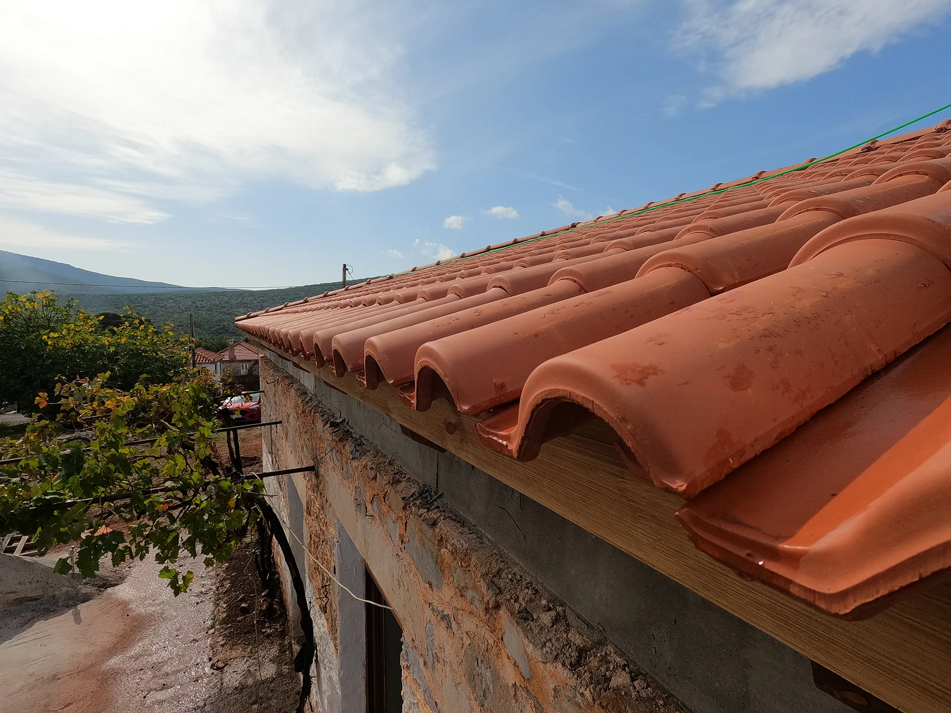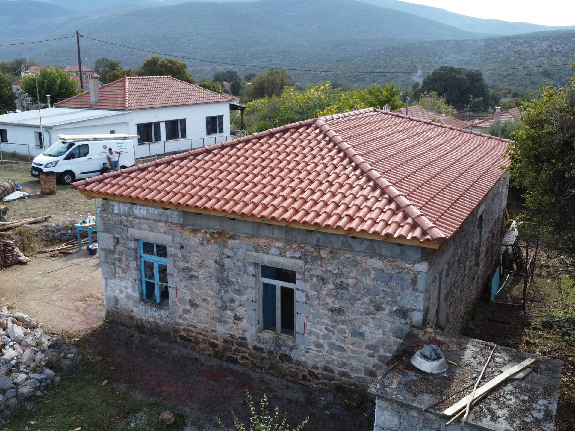 Κατασκευή στέγης με κόκκινα κεραμίδια σε κατοικία στο Λεωνίδιο Αρκαδίας.