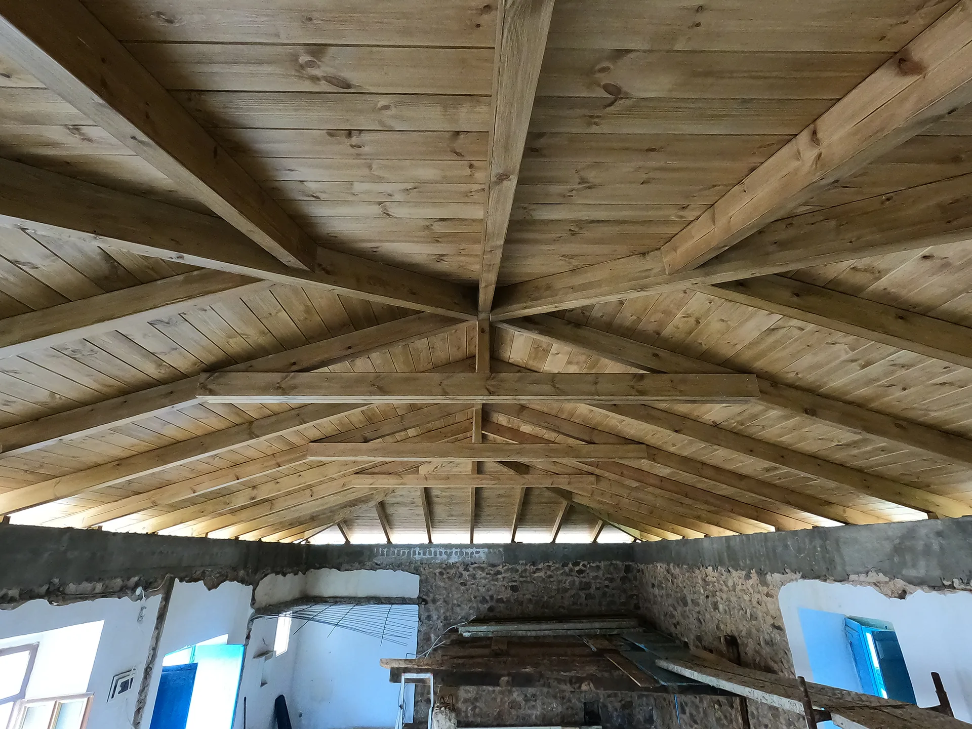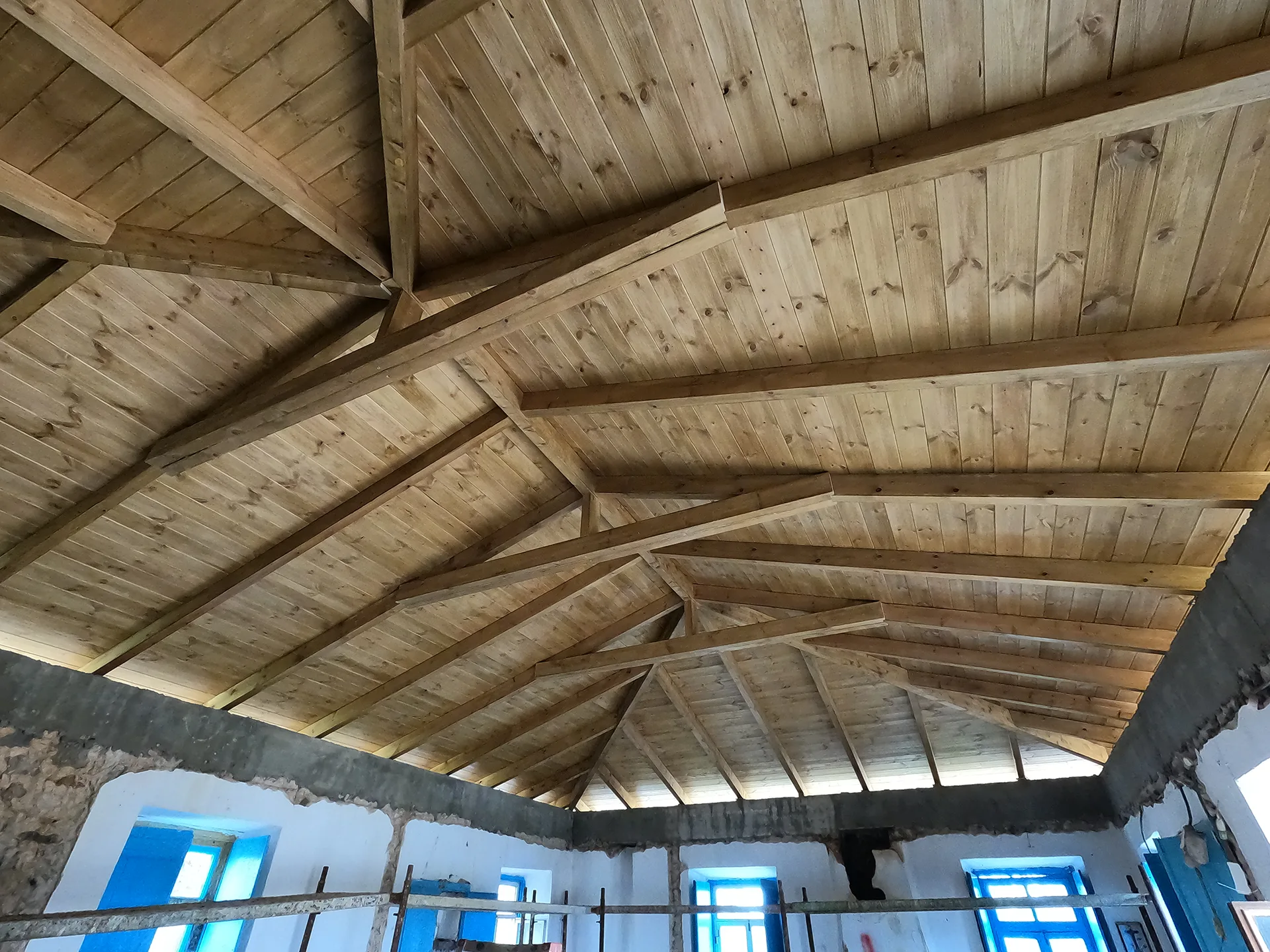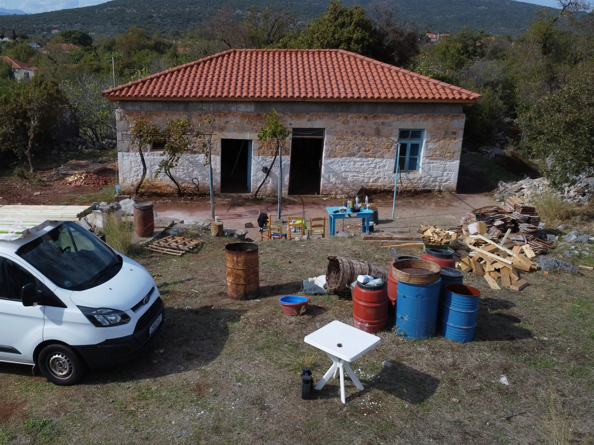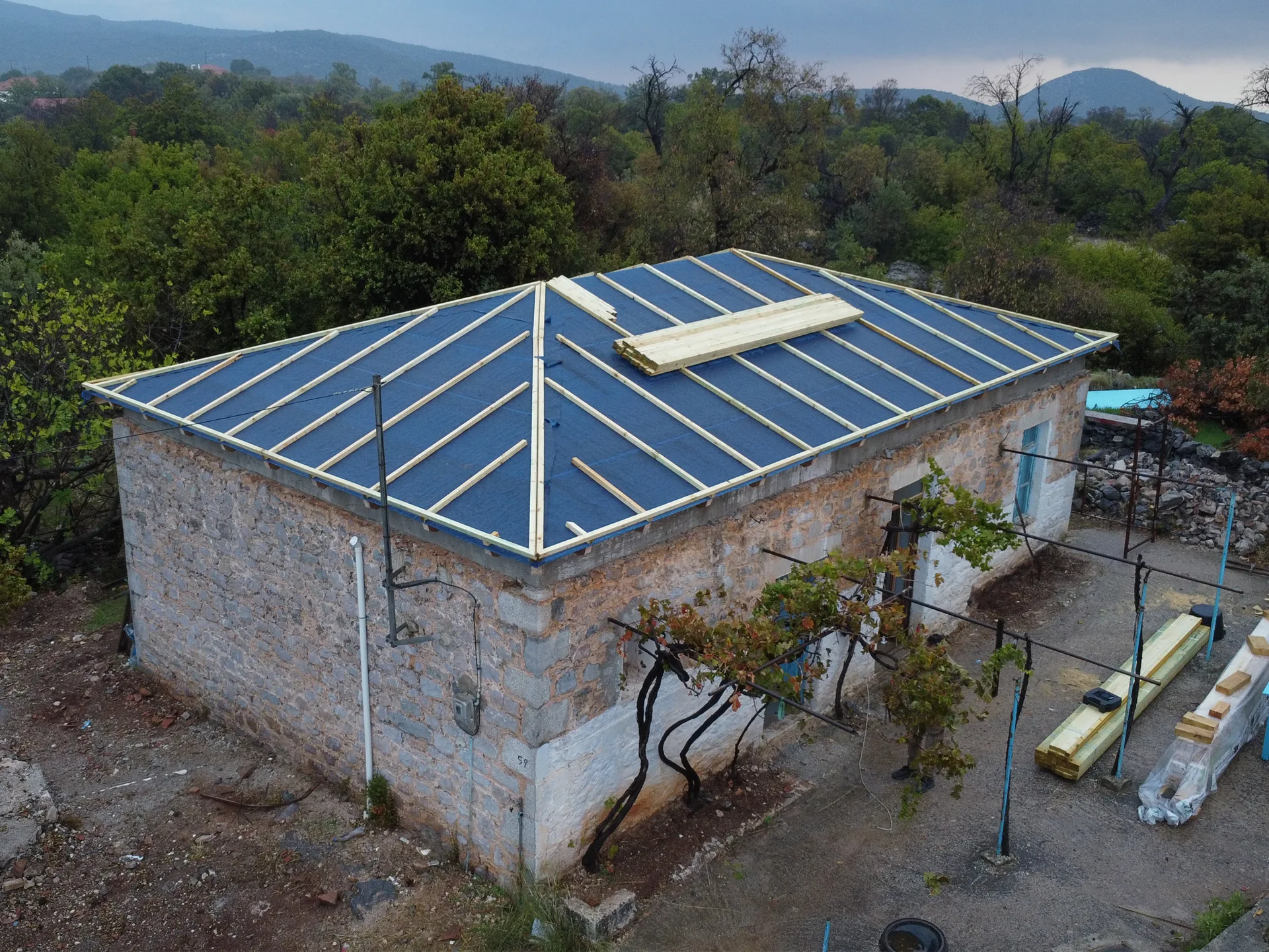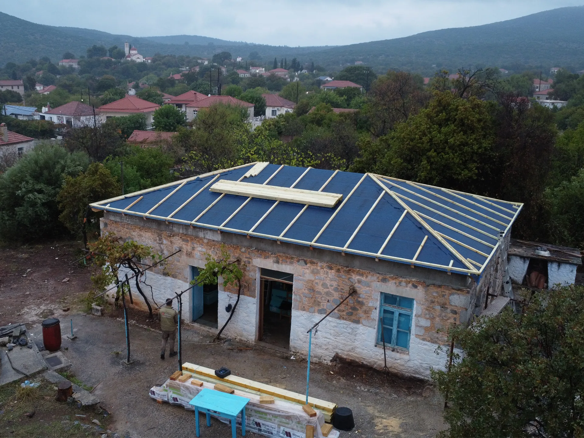 Κατασκευή στέγης με κόκκινα κεραμίδια σε κατοικία στο Λεωνίδιο Αρκαδίας.