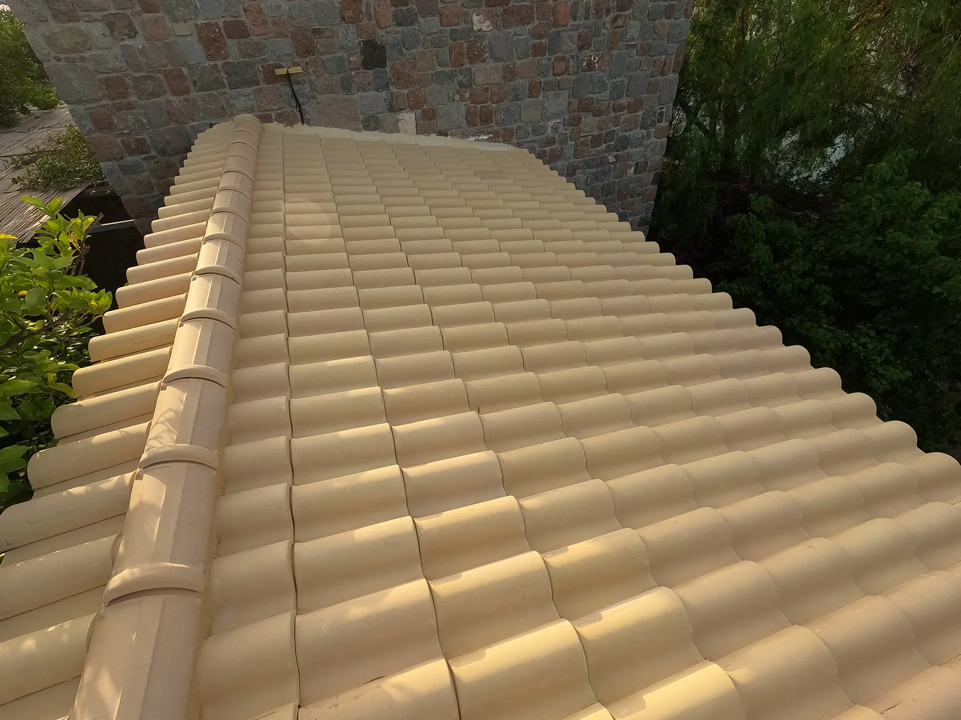 Σε μια φροντισμένη αυλή κατοικίας, σχεδιάσαμε και υλοποιήσαμε δύο ξεχωριστές κατασκευές πέργκολας που προσφέρουν διαφορετικά επίπεδα σκίασης και αισθητικής: μία με επικάλυψη από κίτρινα κεραμίδια και μία με παραδοσιακό καλάμι λυγαριάς.