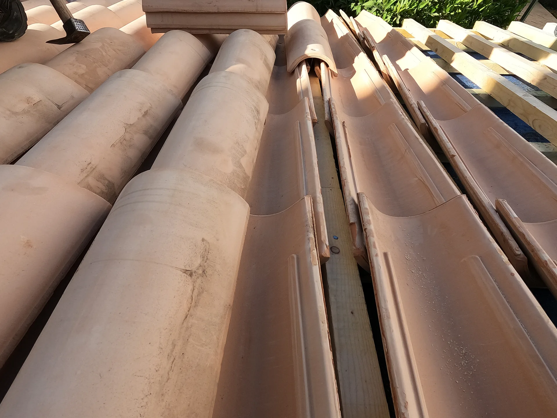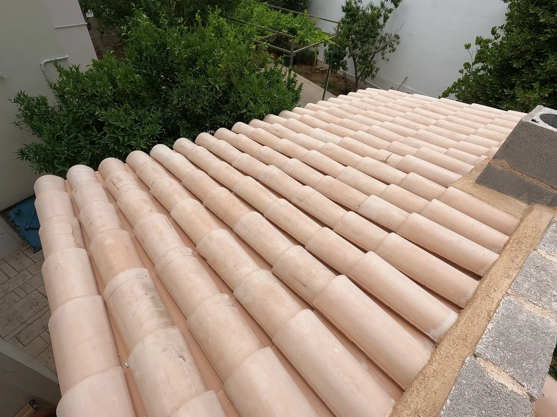Κατασκευή σκεπάστρου με κίτρινο βυζαντινό κεραμίδι στη Χασιά.