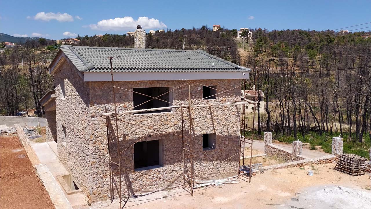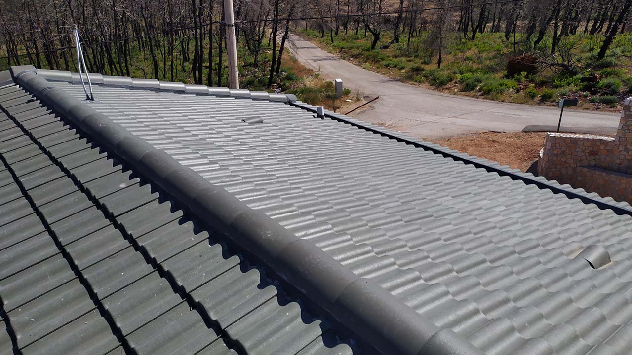 Τοποθέτηση στέγης με μαύρα κεραμίδια σουιδικού τύπου και εσωτερικό λούκι απόληξης υδάτων στην Ιπποκράτειο Πολιτεία.