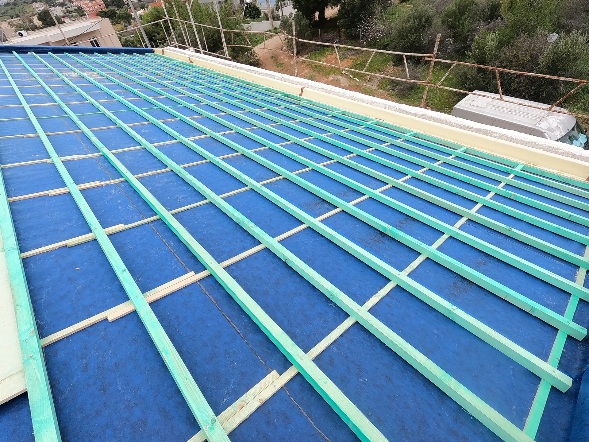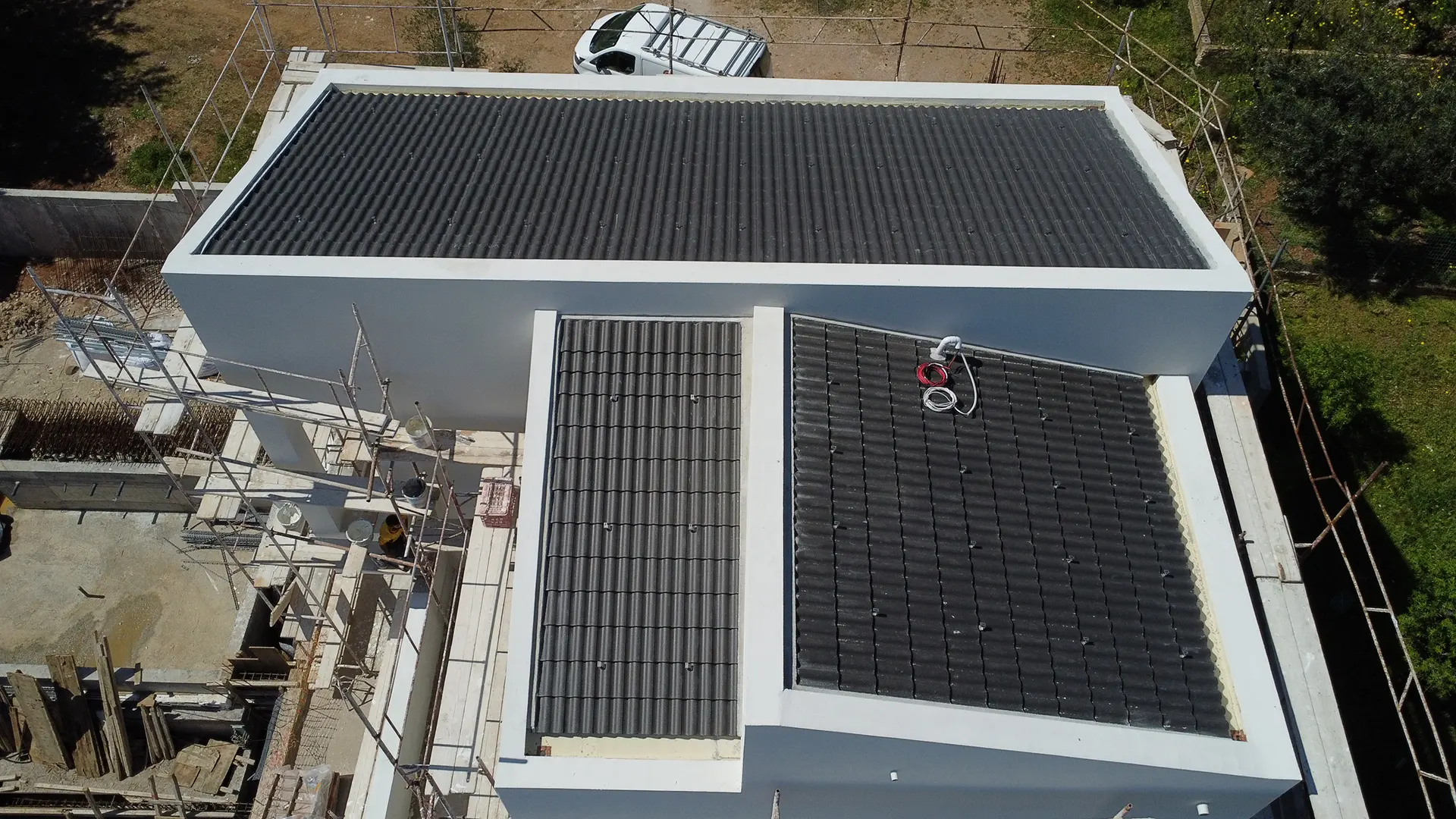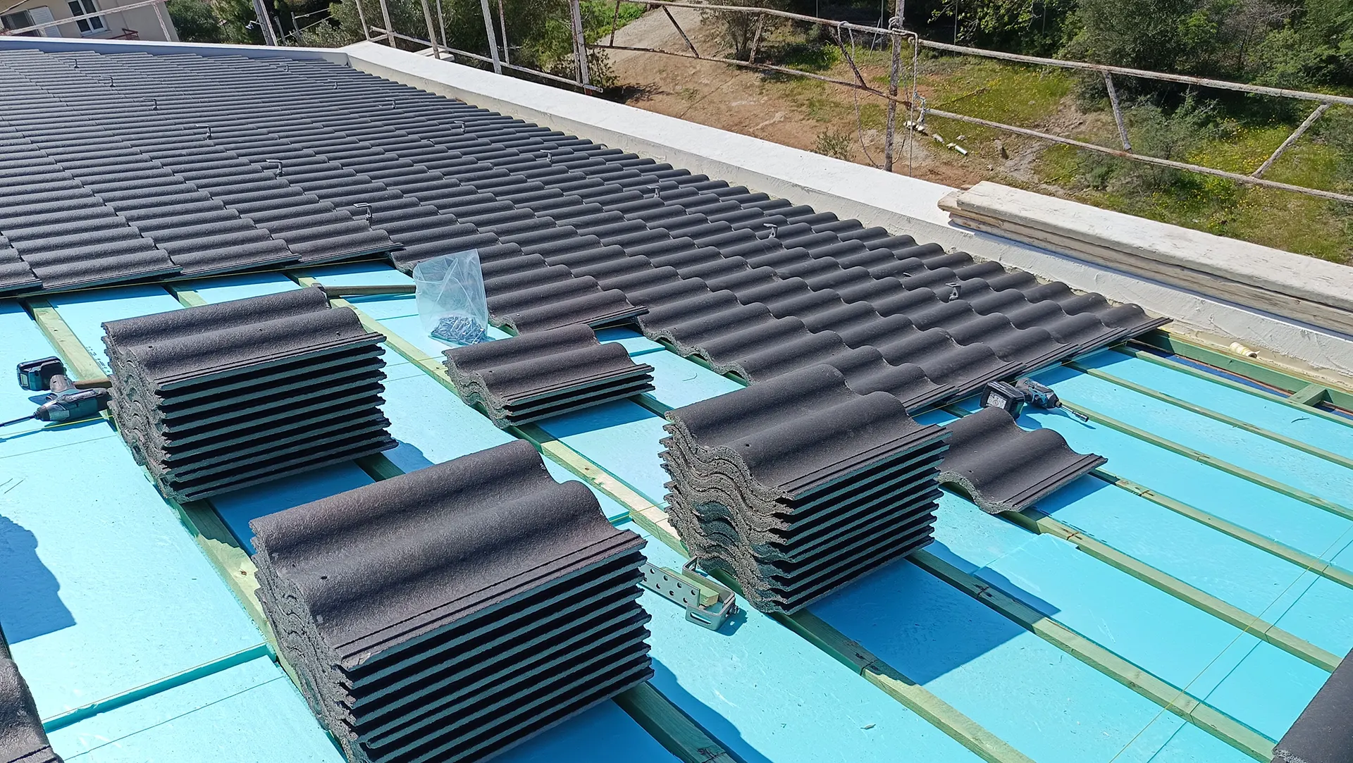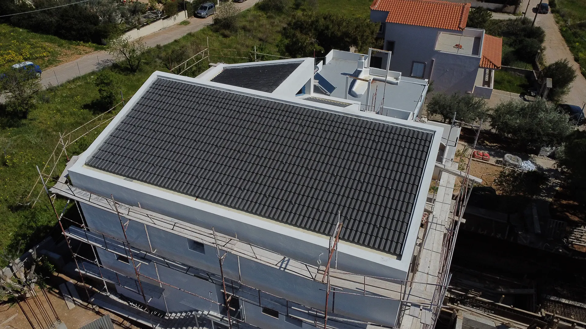 Κατασκευή σκεπής με μαύρο κεραμίδι σουηδικού τύπου Benders στο Πόρτο Ράφτη.