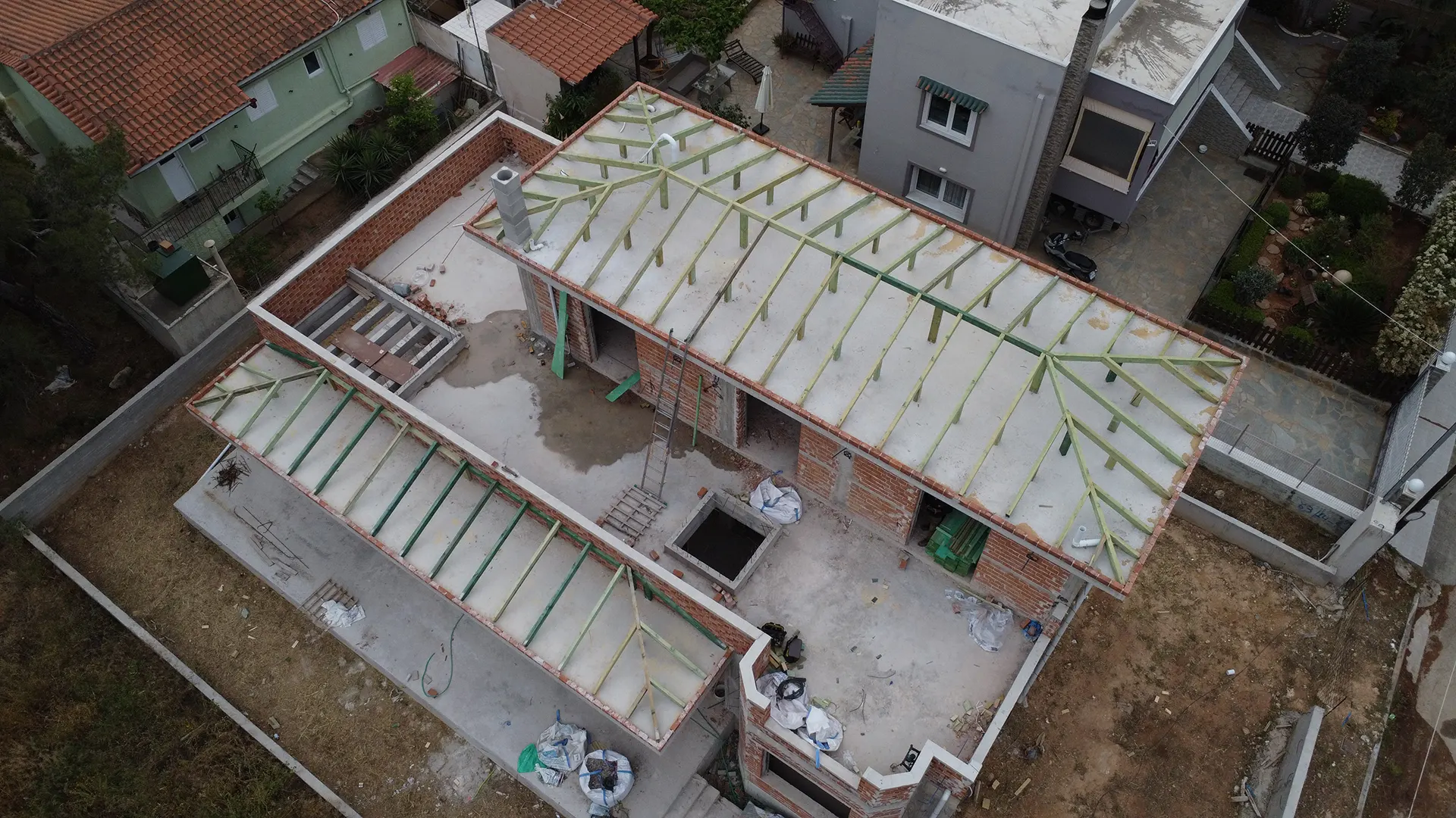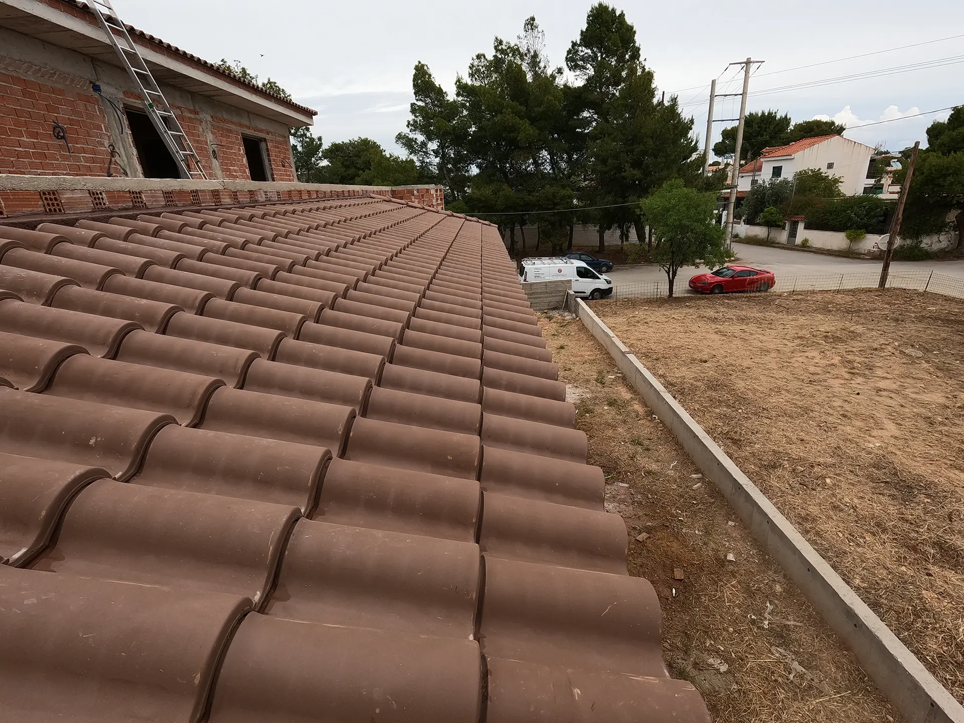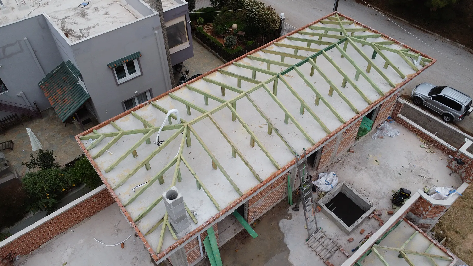 Κατασκευή σκεπής σε κατοικία με φυσικό καφέ κεραμίδι ρωμαϊκού τύπου στη Λούτσα.