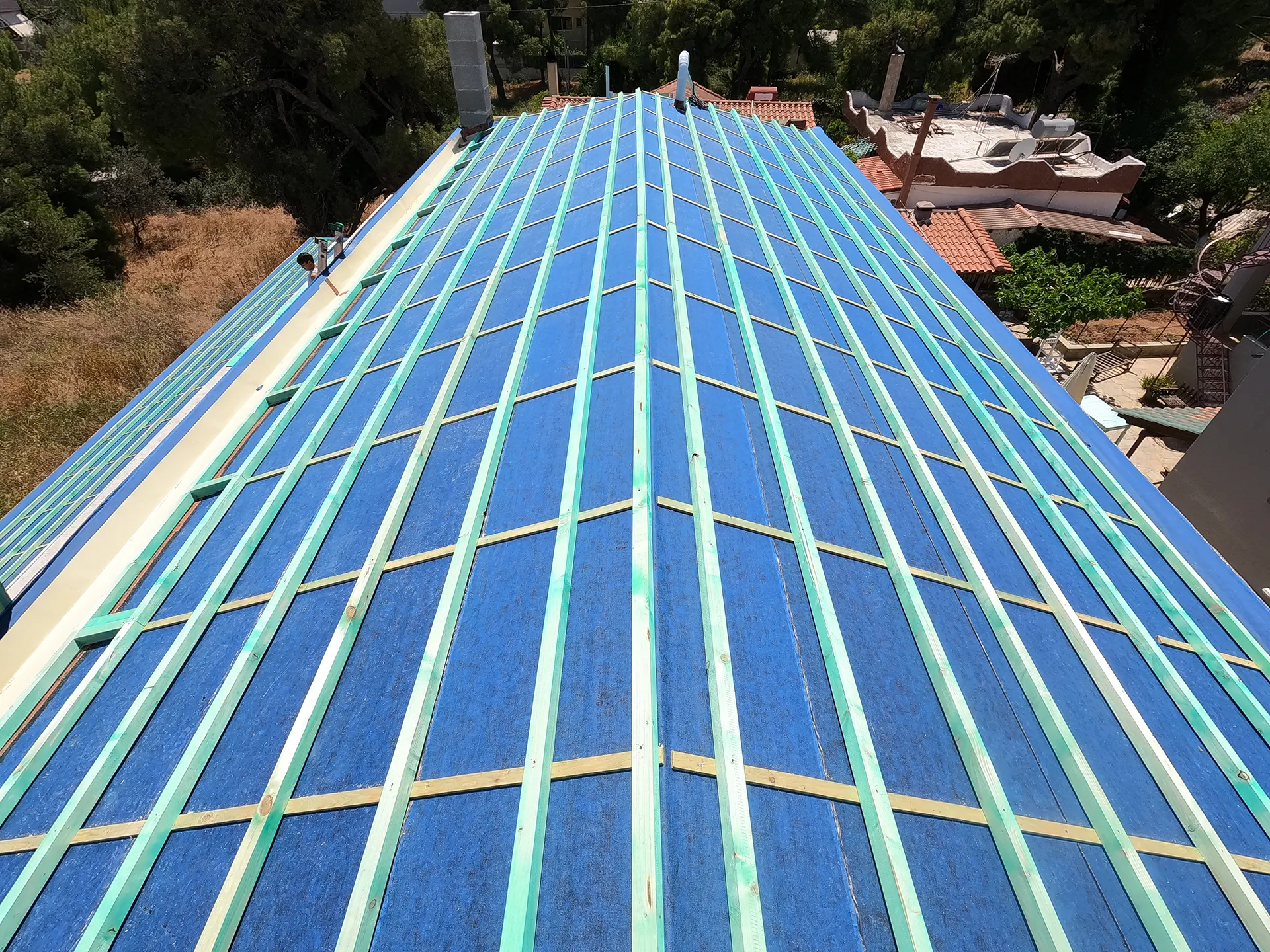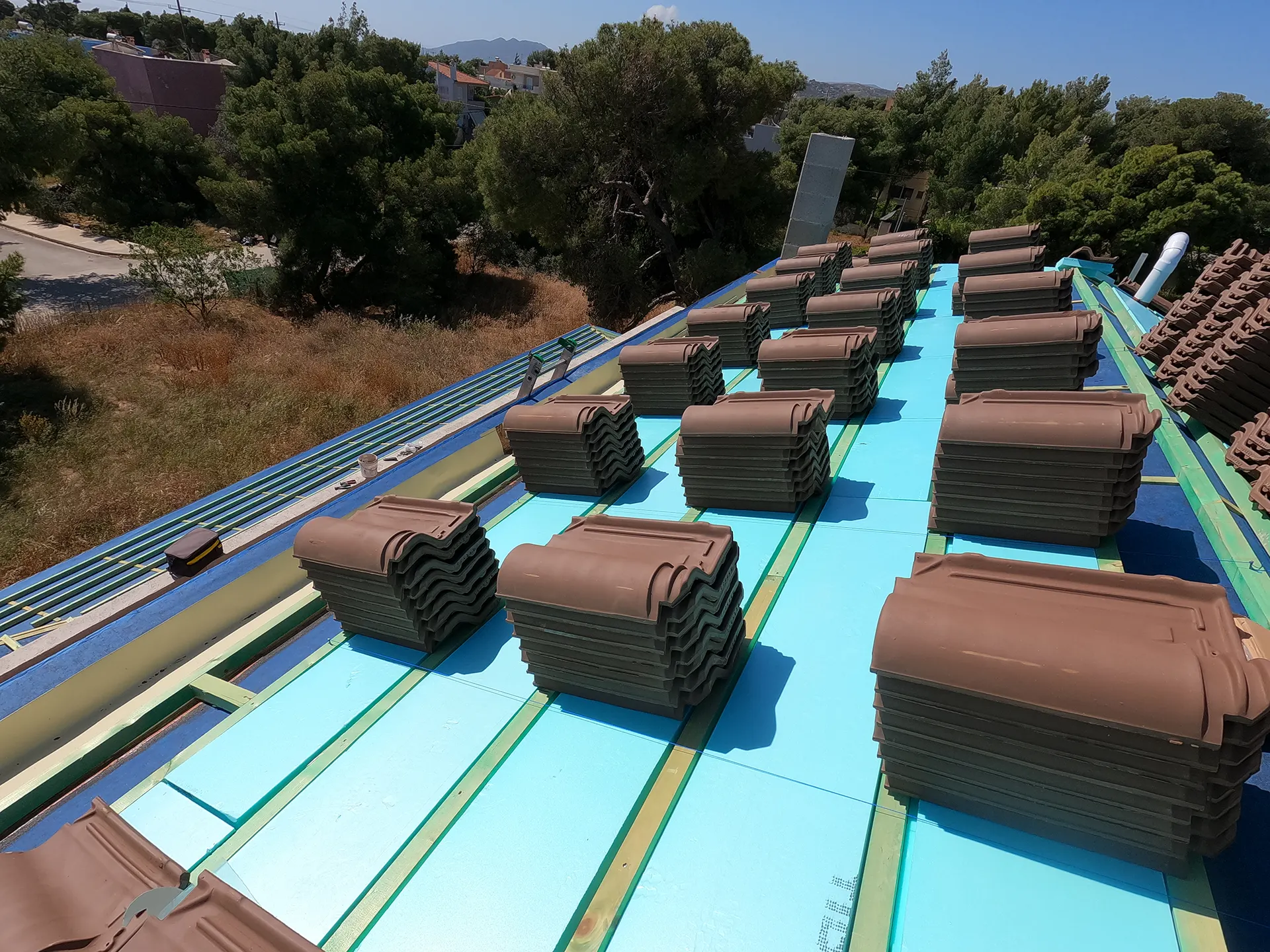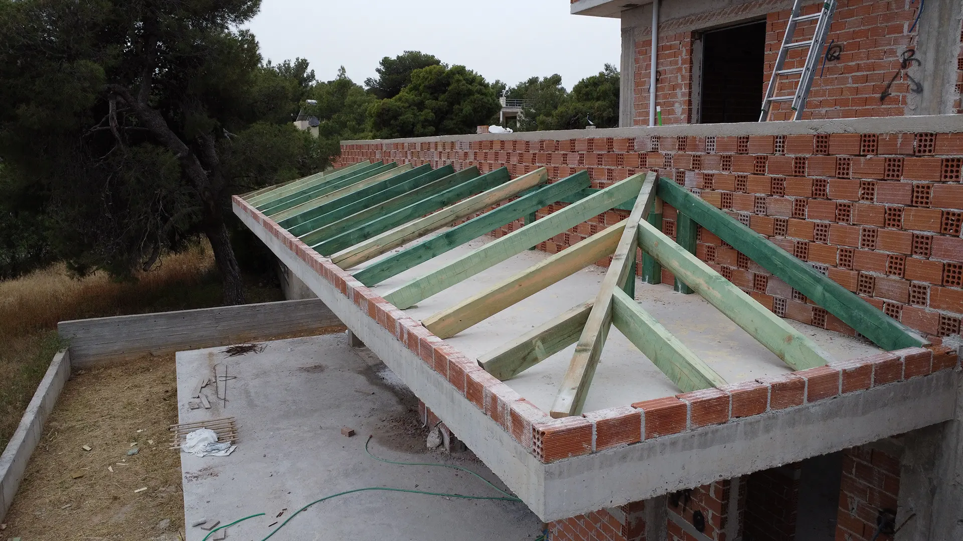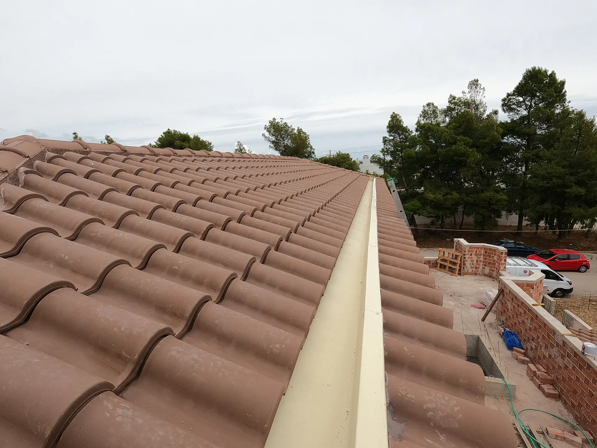 Κατασκευή σκεπής σε κατοικία με φυσικό καφέ κεραμίδι ρωμαϊκού τύπου στη Λούτσα.